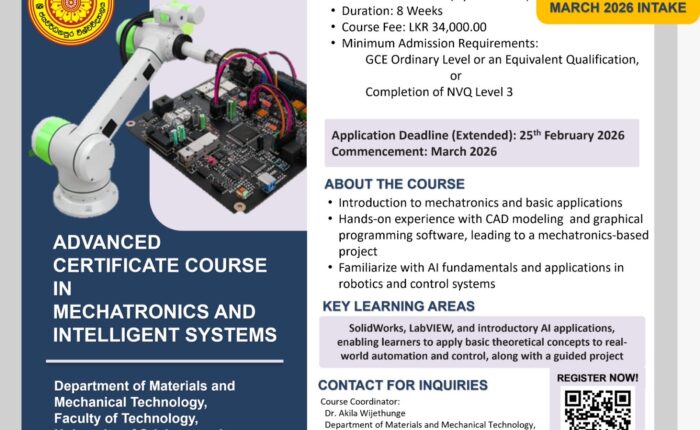 These departments offer Bachelor of Technology Honours Degrees in the fields which are highly demanded in Sri Lanka. These degree programs are fulltime four years professional degree programs which are offered at Sri Lanka Qualification Framework (SLQF) Level 6.